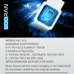 شارژر دیواری 35 وات مدل SO/PQ35CA از برند سوران، یک شارژر سریع و هوشمند است که با فناوریهای Power Delivery (PD)، Quick Charge 3.0 (QC 3.0)، PPS، AFC و FCP، دستگاههای شما را با سرعت و ایمنی بالا شارژ میکند. این شارژر با طراحی جمعوجور و کاربری آسان، گزینهای مناسب برای استفاده در منزل، محل کار یا سفر است.